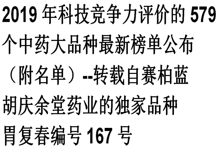 2019年科技竞争力评价的579个中药大品种最新榜单公布(附名单)--转载自赛柏蓝(好体育网页版药业的独家品种胃复…